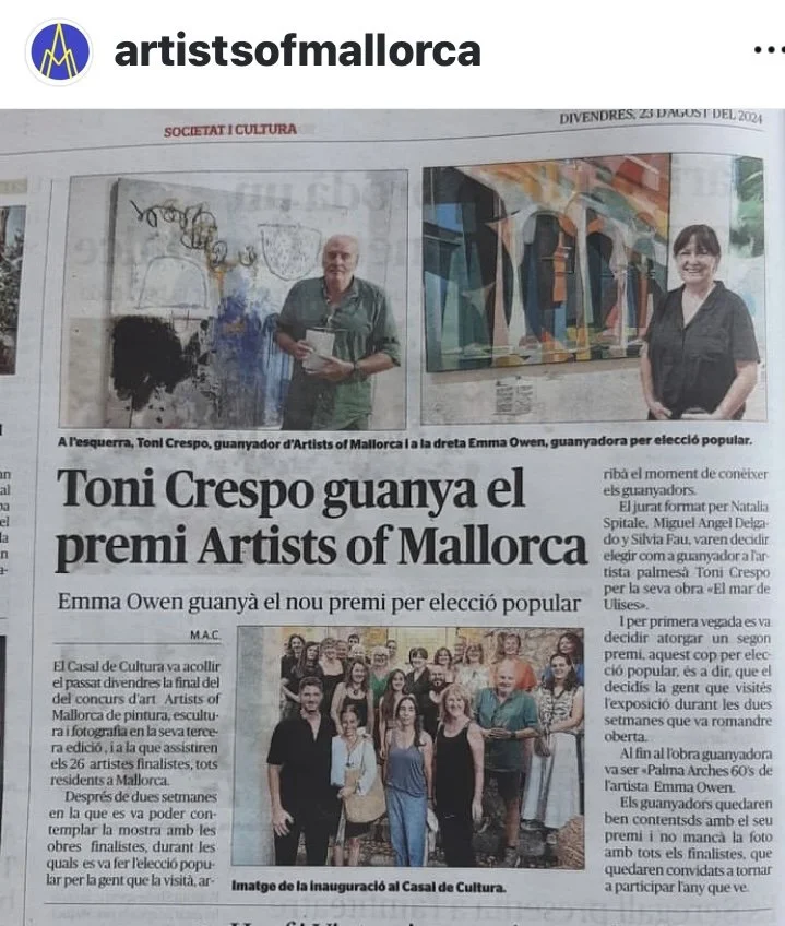 The highlight of 2024 was winning the Artists of Mallorca Elección Popular. Thank you Artists of Mallorca, TV IB3, Setmanarisoller and everyone that voted.